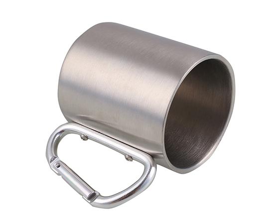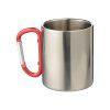 Kovinska skodelica z dvojno steno iz nerjavečega jekla. Ročaj je karabin. Dimenzija skodelice je H-9cm*D-7.9cm. Pakirani so po 36 kos, vsaka v svoji kartonski škatlici. Tisk 180 °C in 150 sekund.
